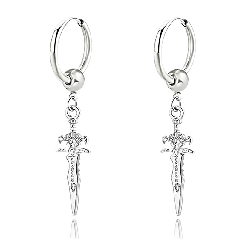 - 【Silver Sword Dangle Drop Hoop Earrings】: Fashion, simple and elegant. This sword earrings are an wonderful way to dress up any look. Simple yet eye-catching design makes the an instant standout.