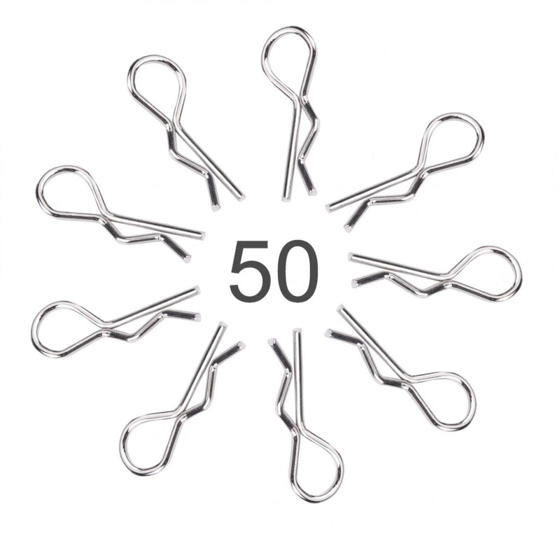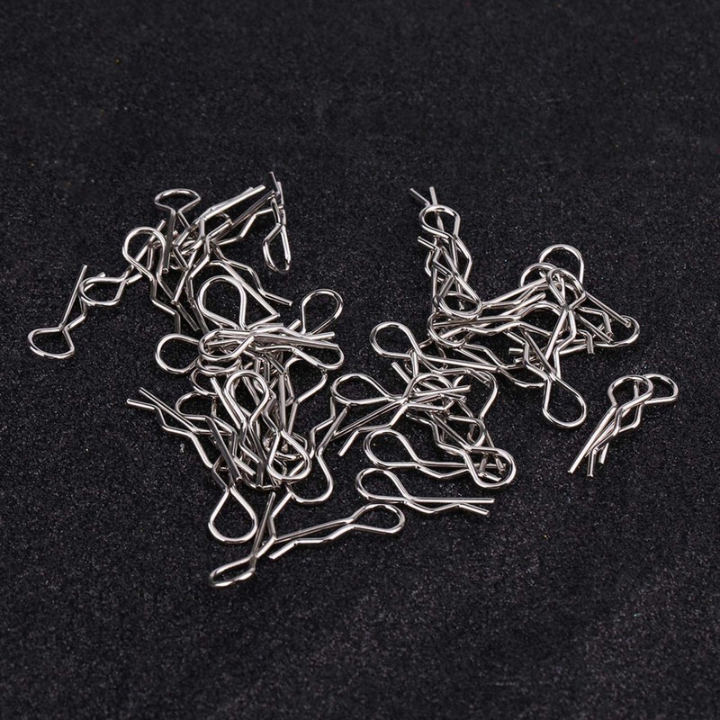 Alomejor 50 Pcs RC Car Body Clip Pins,Stainless Steel RC Body Clips Bent R Pins for 1/10 1/12 1/16 Scale Remote Control Car Shell