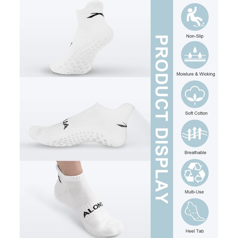 ALONG FIT 3/4 Pairs Non Slip Cushioned Grip Socks for Women Men Pilates Yoga Socks for Barre Hospital Barefoot Grippy Sock