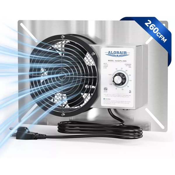 - Built-in Isolation Mesh & IP-55 Rated Axial Fan: Isolation Mesh on the back prevent particulates from gaining access to the crawl space; The stainless steel shell with an IP-55 rating Axial Fan, highly resistant to liquids and dust, higher weather-proof, makes it ideal for work in a humid environment with long service life, don't worry it rusts.