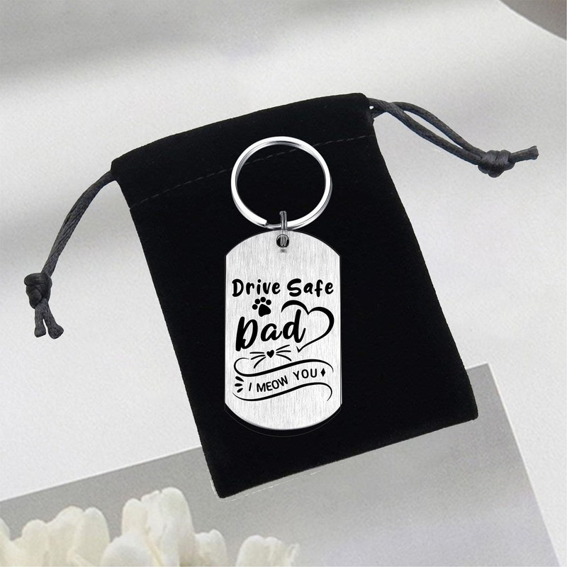 - Humorous and Heartfelt Message - Engraved with the message “Drive Safe Dad, I meow you. To the world you are a cat dad, but to me you are the world". These heartfelt words express love and gratitude to cat dad drivers. Imagine how happy and touched they'll be to receive this thoughtful gift