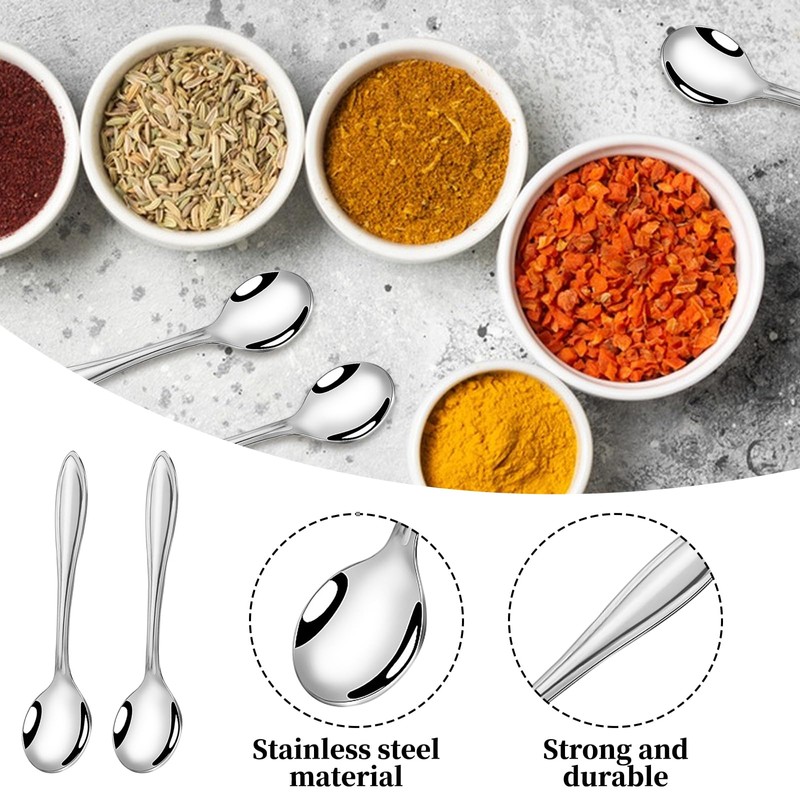 - The mini stainless steel spoon is suitable for use in kitchens, cafes, bars for spices, coffee, salt or desserts.