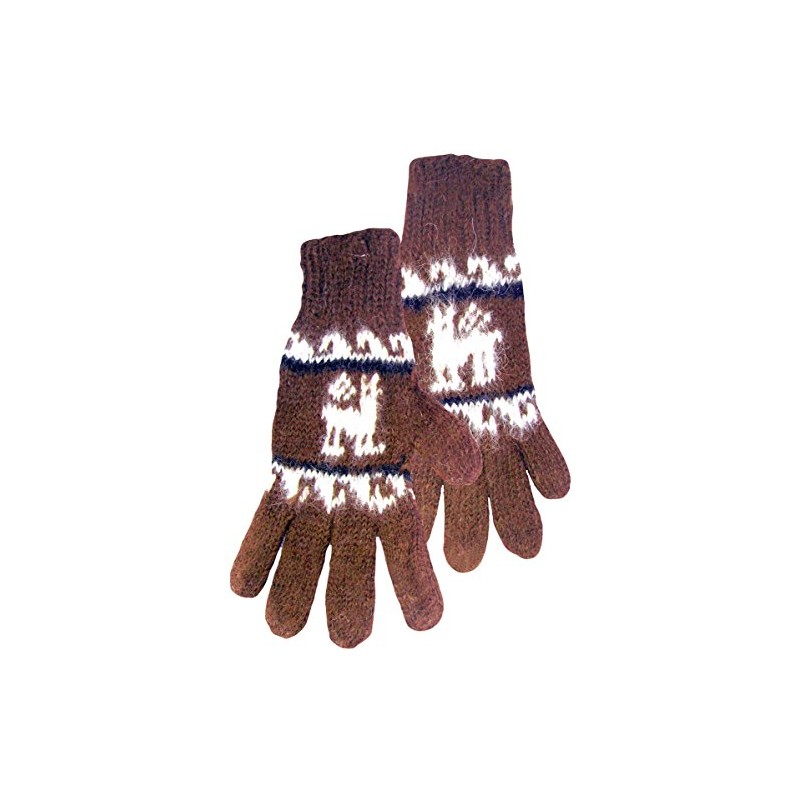 Alpaca Gloves with Llama Pattern (Brown)