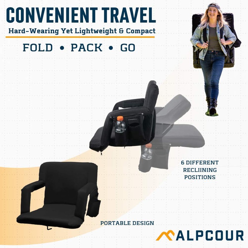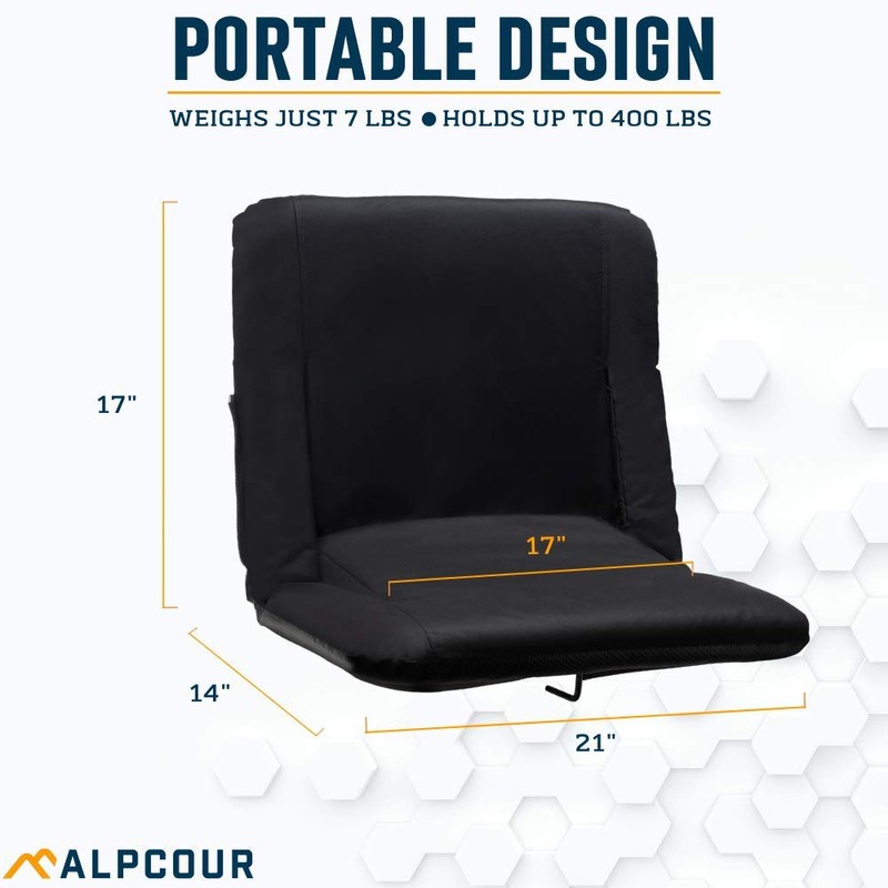 Alpcour Folding Stadium Seat – Deluxe Reclining Wide Adults Camping Back Support Chair for Bleachers – Best Extra Thick Plus Size Waterproof Lightweight Sturdy Padded Bleacher Seats Backs w/Arm Rests