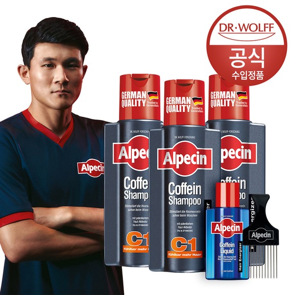 Alpecin Caffeine Shampoo C1 250ml x 3 + LQ 75ml + Pomade Comb provided / 알페신 카페인 샴푸 C1 250ml 3개 +LQ 75ml+포마드빗 증정