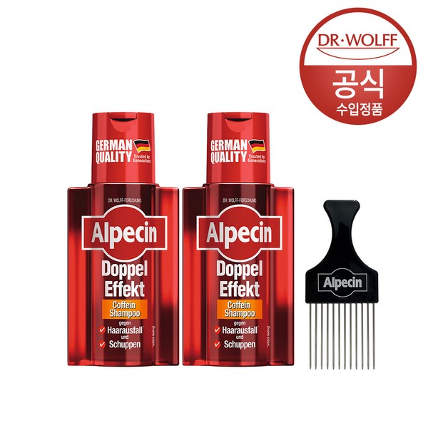 Alpecin Double Effect Caffeine Shampoo (2 x 200ml) + Pomade comb gift / 알페신 더블이펙트 카페인 샴푸 200ml 2개 +포마드빗 증정
