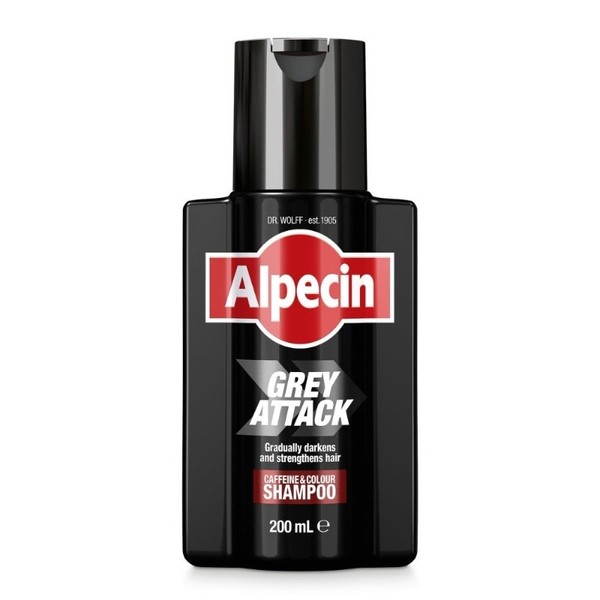 Alpecin Grey Attack Caffeine & Colour Shampoo darkens and strengthens greying hair with advanced repigmentation technology, gradually forming natural color pigments. Its caffeine complex promotes thicker, stronger hair while improving grip for easy styling. Use daily for 2-5 minutes to achieve desired color. Ideal for light brown to black hair.