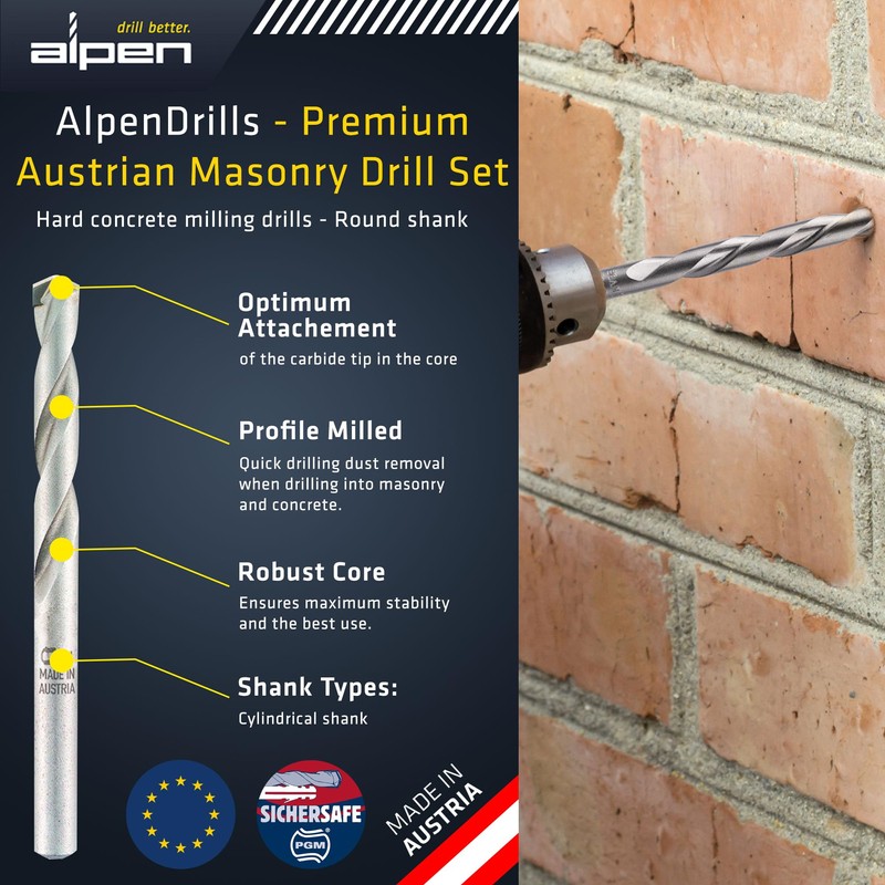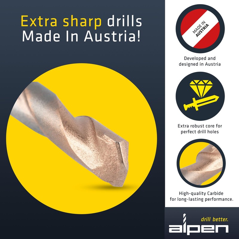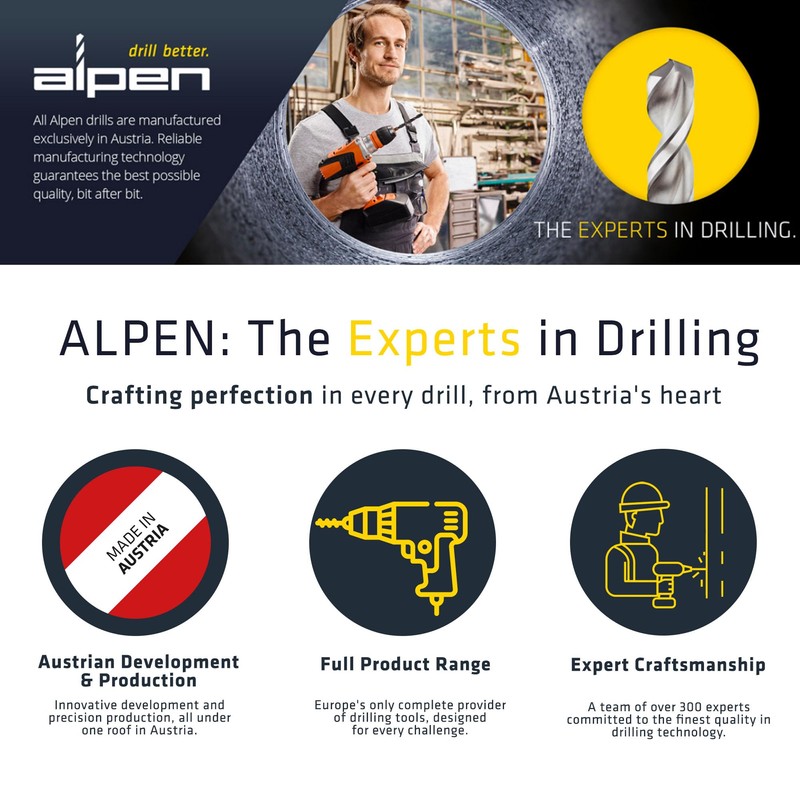 - ALPEN: As Europe's only full source provider for drilling tools, we will provide you with the right drill bits for perfect results from our production in Austria. All of our products are known for their longevity and quality - making them a perfect addition to your toolkit.