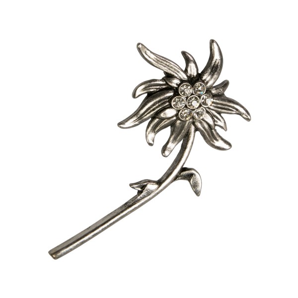 Alpenflüstern Costume Brooch Rhinestone Edelweiss Clear API060, Gemstone, Without Stone