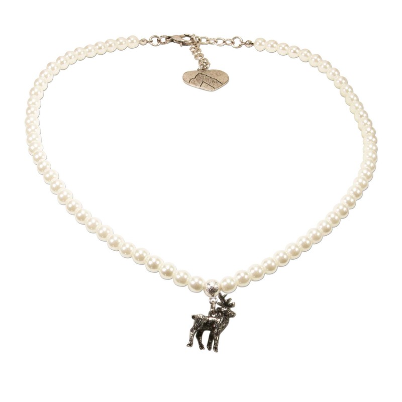 Lovely costume jewellery set for your dirndl. The pearl necklace has a small deer and matching it is included in the set a pearl bracelet and earrings, which are also equipped with small deer pendants. You can't go wrong with this jewellery set, as it fits any dirndl.