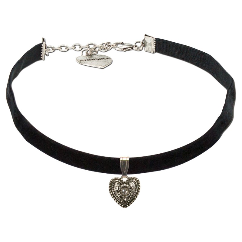 Length of the traditional necklace: approx. 30 cm with 7 cm extension chain. Width of velvet band with traditional heart pendant: 1 cm.