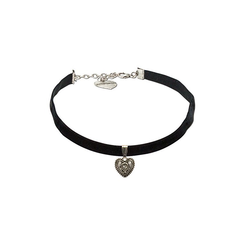 Alpenflüstern DHK209 Women’s Traditional Velvet Choker with Heart, Narrow, Tight-Fitting Costume Jewellery in Traditional Colours, No Gemstone