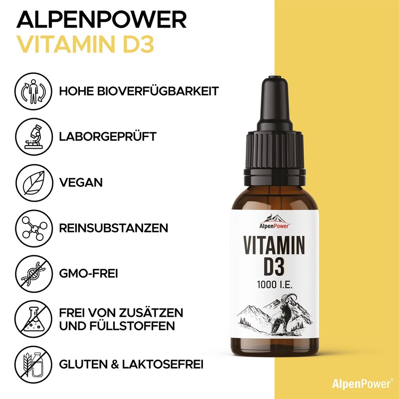 Alpenpower AlpenPower Vitamin D3 50 ml (1700 Tropfen) I 1000 I.E. pro Tropfen I Hohe Bioverfgbarkeit I MCT-?l aus Kokosnuss I Hochdosiert, in Deutschland hergstellt