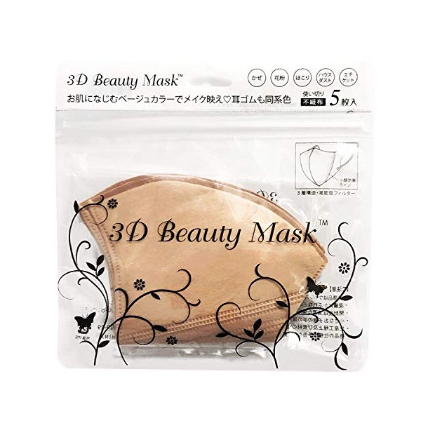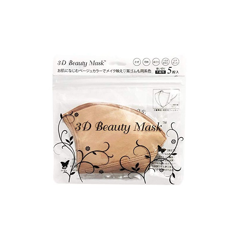 The popular blood-colored mask is a non-woven mask. Fashionable nuanced beige makeup color that matches your skin. A blood color with outstanding facial effects. A 3D model that is easy to breathe. 3-layer construction, 99% cut ultra-thin high performance filters! Package comes with a zipper for easy carrying.