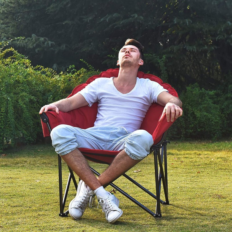 ALPHA CAMP Oversized Moon Saucer Chair with Folding Cup Holder and Carry Bag - Red