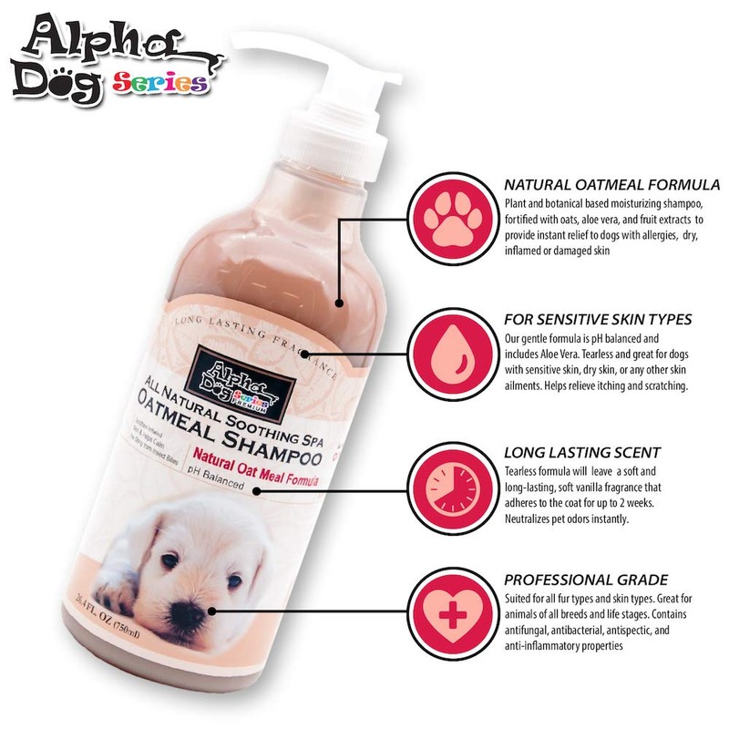 Alpha Dog Series Oatmeal Grooming Natural Dog Shampoo and Conditioner with Aloe Vera, pH balanced Shampoo for Dogs, Tear-Free, Moisturizing Dog Shampoo for Sensitive Skin - 26.4 Oz (Pack of 2)