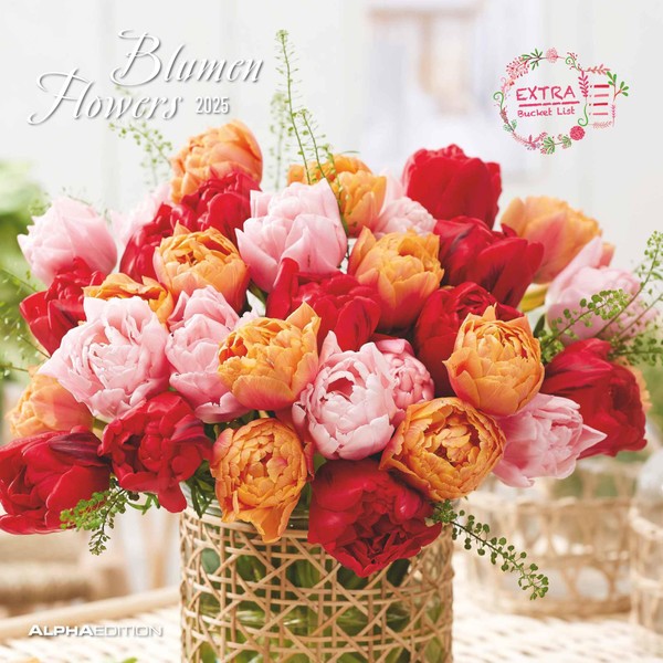 Alpha Edition - Flowers 2025 Brochure Calendar, 30 x 30 cm, Wall Calendar with Space for Notes and Appointments, High-Quality Picture Motifs, Moon Phases, Monthly Overview and Holiday Dates DE/AT/CH