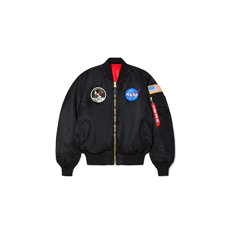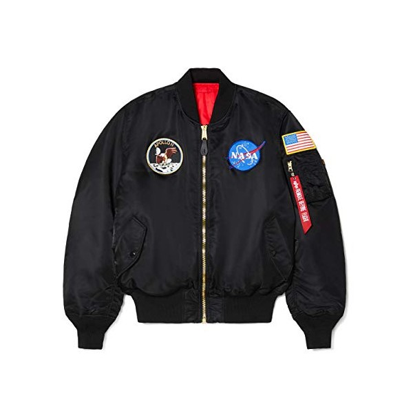• Bonus Features: This classic flight jacket has a utility pocket on the sleeve with a signature red ribbon. Features NASA and Apollo patches on the chest and sleeves. There are also 2 lower flap pockets and 2 interior welt pockets. The shirred sleeves and knit rib collar, cuffs and waistband give this jacket the authentic bomber look.