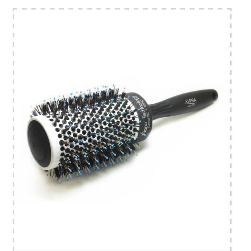 Alpha New York Ceramic Round Hair Brush, Boar Bristles, Nano Ionic Technology Lagre