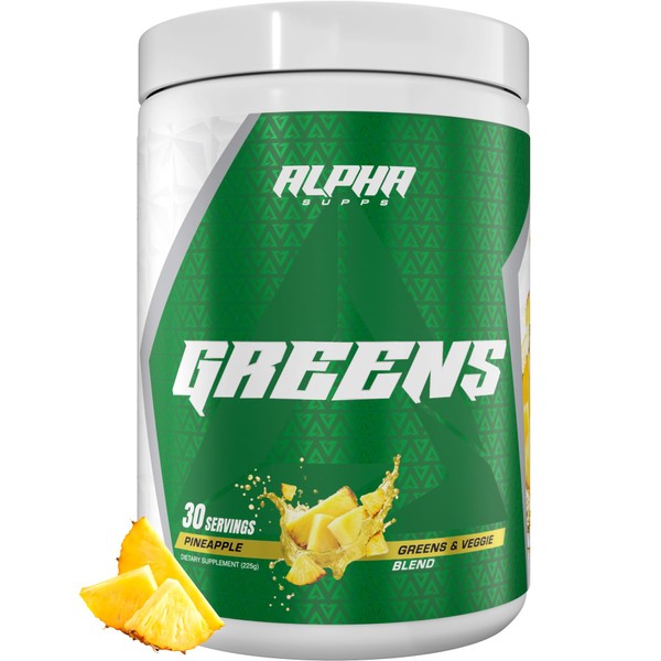 Alpha Supps - Alpha Greens Supplement | Fruit & Vegetable Superfood Powder | Over 40 Natural Plant Based Ingredients | Prebiotic & Probiotic Digestive Support Blend - 30 Servings (Pineapple)