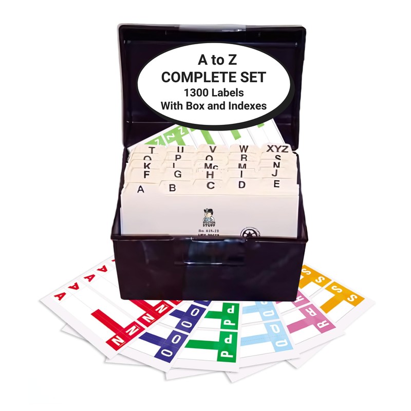 - INCLUDES FILE BOX AND INDEXES: Keep organized with a sturdy file box that you can keep on your desk for quick access. Includes durable index tabs to keep alpha labels in the right place.