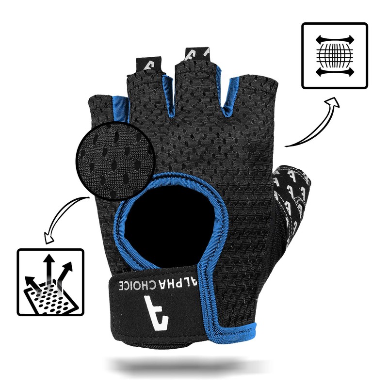 Alphachoice Training / Fitness / Strength / Bodybuilding / Sports Gloves For Women/Men Without Wrist Section For Strength Training, Weight Lifting, Black/Grey/Pink Camouflage, blue, XS
