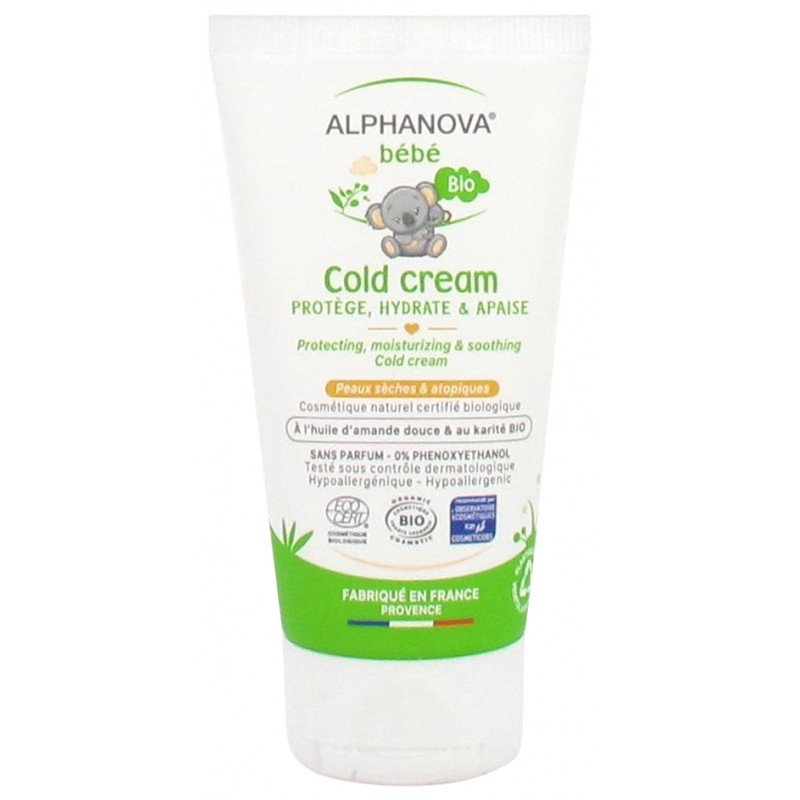 Alphanova Baby Organic Cold Cream 50ml is a rich hypoallergenic cream for the care of dry, irritated or atopic skins.