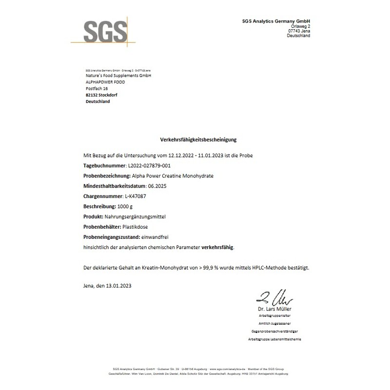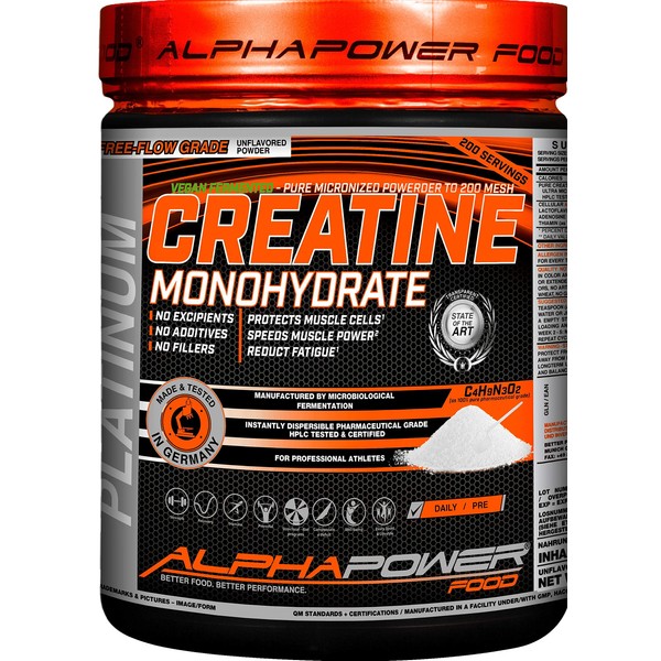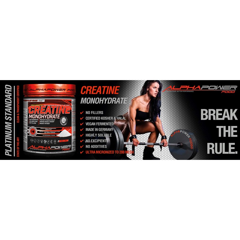 - ALPHAPOWER FOOD Creatine monohydrate, creatine powder, 1 kg, neutral without flavour, produced in Germany