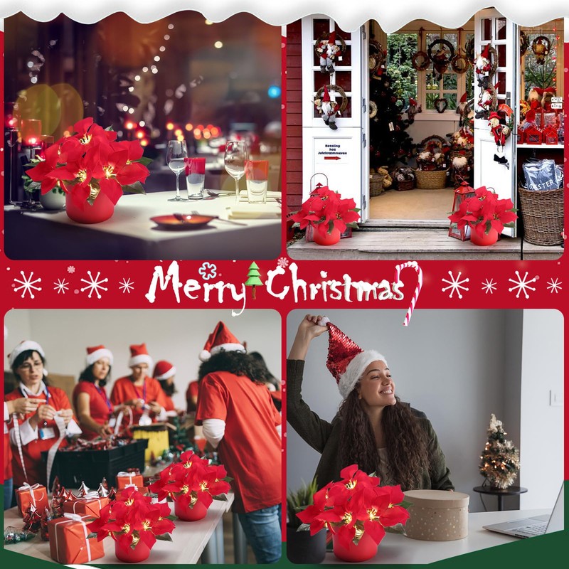 - Lifelike Poinsettia Potted Plants: These artificial red poinsettia flowers are crafted from fabric and closely resemble the real thing. With finely textured green leaves and vibrant red flowers, these Christmas poinsettias create a wonderfully natural look. The red flower pots enhance the festive atmosphere.
