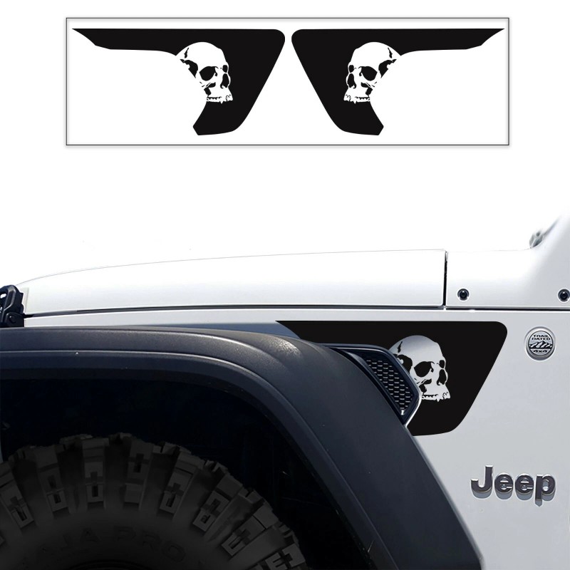 AlphaVinyl Skull side scoop fender decal pair kit fits Jeep Wrangler JL/ JT 2018+