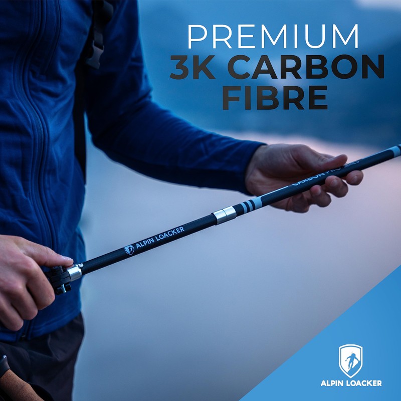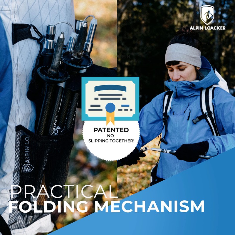 - 🌲[ Hiking pole for men and women ] - The foldable telescopic hiking poles carbon fiber from Alpin Loacker measure only 14 inches when pushed together. The trekking poles are individually adjustable from 45 - 53 inches - perfect for anyone with a body height starting from 5,4 foot.