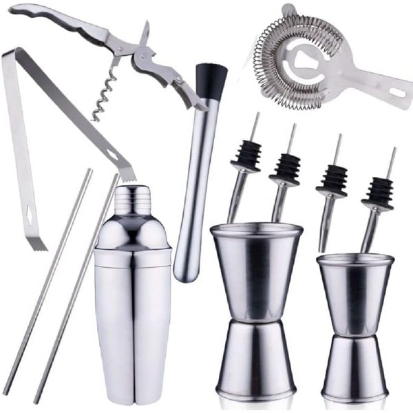 alpina Cocktail Set Complete – 14 Pieces – Cocktail Shaker/Stamper/Jigger/Etc – Stainless Steel