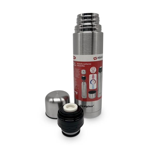 Alpina Thermos Flask – Double-Walled – 750 ml – Includes Cup – Stainless Steel
