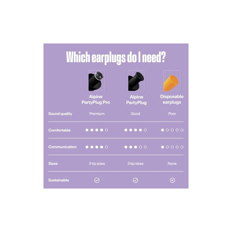 - FIND YOUR FIT: Comes with eartips in three sizes (S/M/L) for a comfortable, secure fit - ensures proper noise reduction and all-day comfort during concerts and festivals