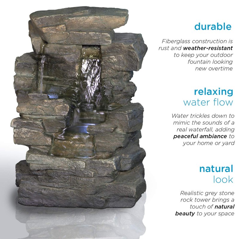 - RELAXING WATER FLOW: Water cascades down to mimic the sounds of a real waterfall, adding peaceful ambiance to your home or yard