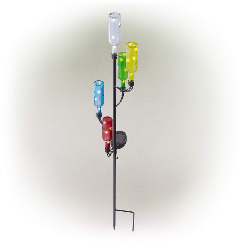 Alpine Corporation 37" Tall Outdoor Solar Glass Bottle Tree Stake LED Solar Stake