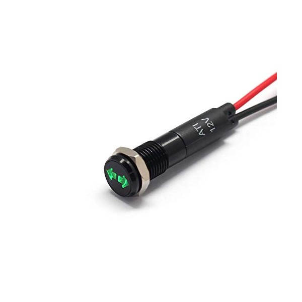 Alpinetech PLB8MS 8mm 5/16" 12V LED Metal Signal Indicator Pilot Dash Light Black Bezel with Symbols (Hazard Light)