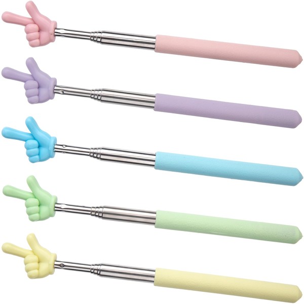 Alpinleux 5 Pcs Retractable Finger Pointer Sticks, Pointer Finger Stick, Extendable Teacher Pointer, Pointer Sick for Classroom, Reading (5 Light Colors)