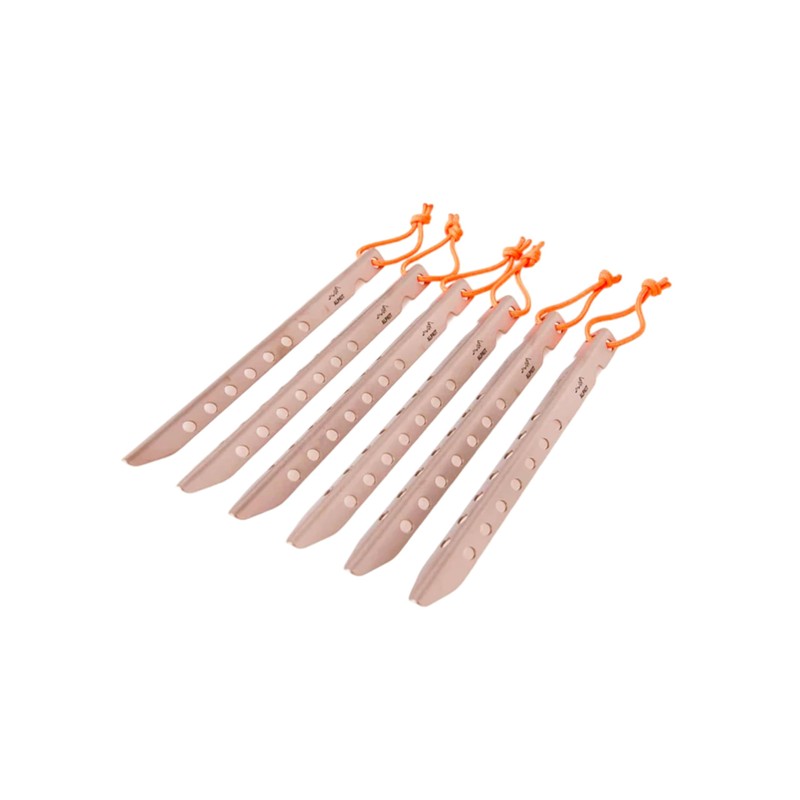 Designed with minimalist camping in mind, Apex are ultralightweight tent pegs made of titanium and weighing just 12 grams each. Incredibly light & compact V-shaped tent peg. Perfect for soft ground. Reflective loop cord for easy removal and visibility. Tapered point makes staking easy. Titanium is light and strong meaning Apex provides the perfect balance of weight versus holding power, Apex tent pegs offer added holding power in soft ground due to their 'V' shape design. Crafted from titanium these pegs are light and strong, weight is further reduced thanks to the lightening holes along the titanium shaft. A guide slot at the top of the peg secures your guy line. Each peg comes with reflective accessory cord to help you extract the peg when you break camp. It's worth carrying a few extra in case of emergency.