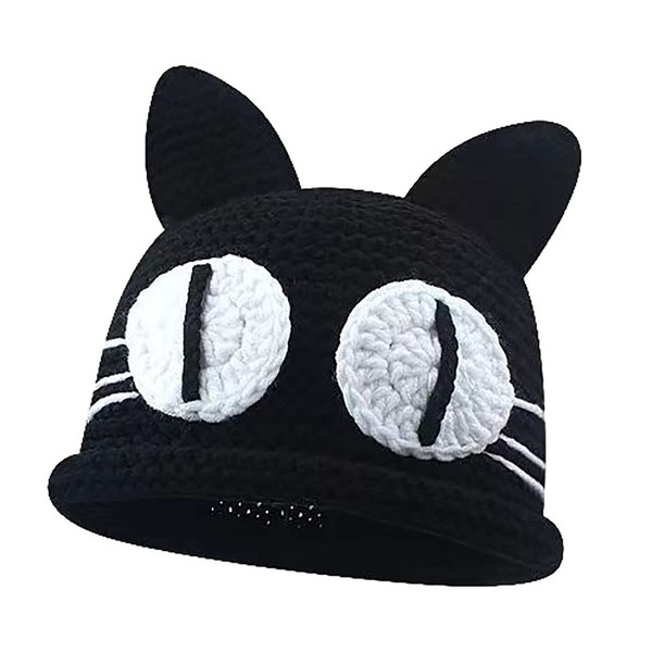 Alqpopg Womens Anime Beanie Hat Winter Warm Cap Cute Cat Crochet Caps Cat Ears Knitted Hats Girl Big Eyes Outdoor Ski Hat Black, Blcak, 1-2