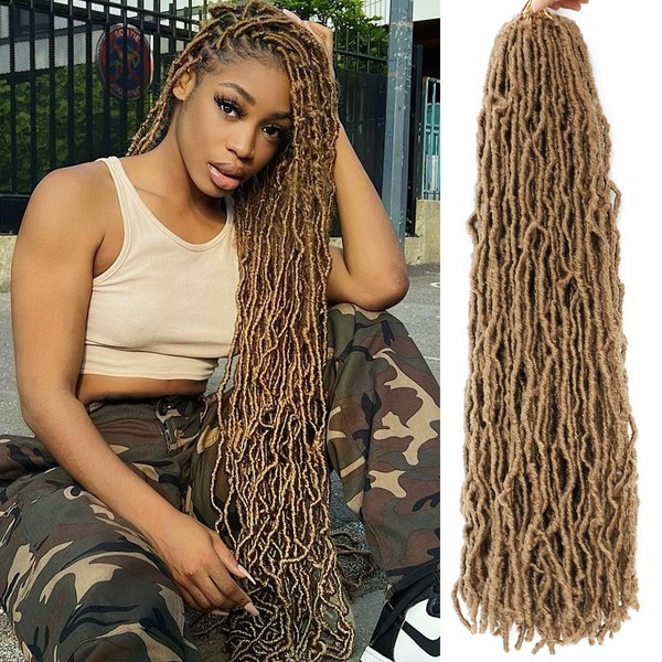 Alrence Faux Locs Crochet Hair Blonde 36 Inch 7 Packs Soft Locs Long Crochet Locs Goddess Locs Natural Synthetic Pre looped Crochet Braids For Butterfly Locs Crochet Hair (36 Inch (Pack of 7), 27#)