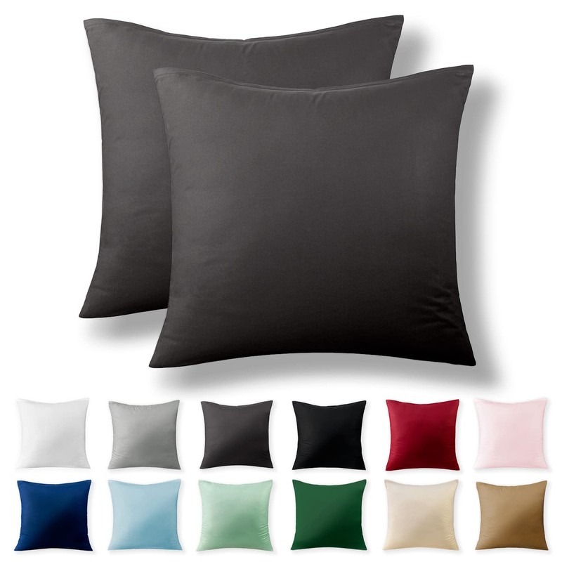 Alreya Renforcé Pillowcase, 100% Cotton, Super Soft Pillowcase with YKK Zip, Pillow Slip Only, 80 x 80 cm, Anthracite, Set of 2