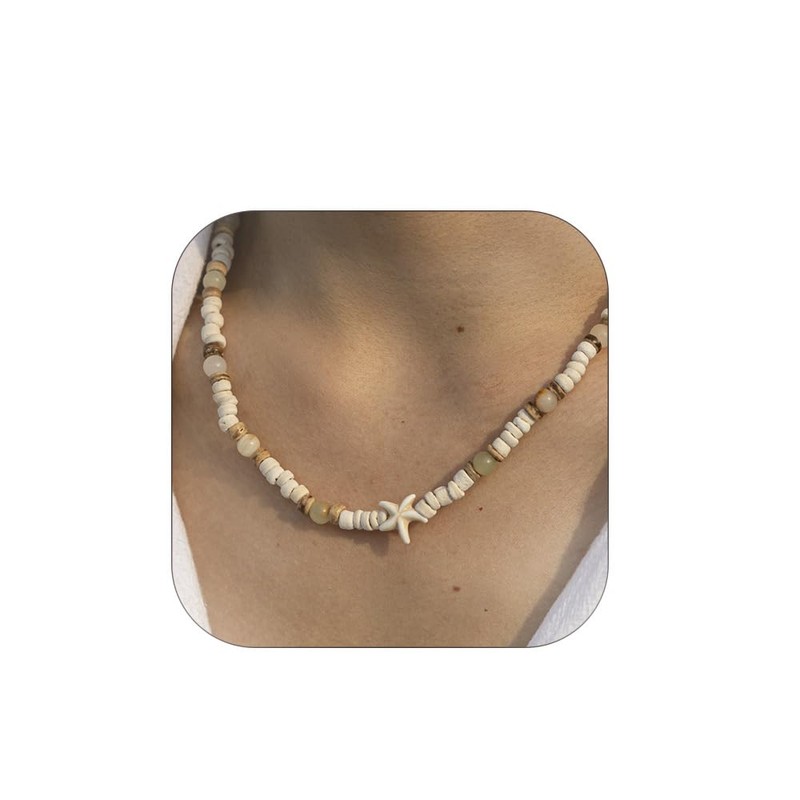 ALRNBY Puka Shell Necklace for Men Natural Coconut Shell Starfish Beaded for Women Boho Necklaces Summer Beach Trendy Jewelry