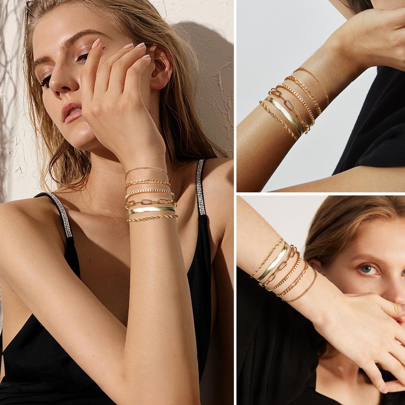 - Bracelets Set:Contains satellite bracelets/figaro bracelets/box chain bracelets/paperclip bracelets/snake chain bracelets/rope bracelets. These Bracelets are suitable for layering as well as being worn alone.