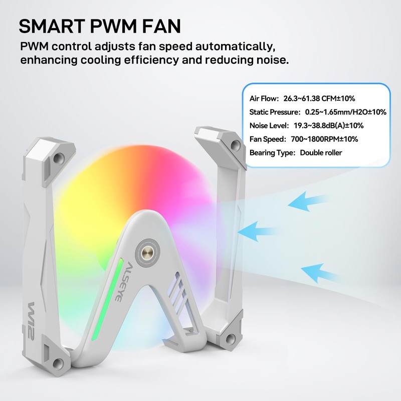 ALSEYE W12 Pro 120mm ARGB PWM Desktop Case Fan, Aluminum Frame, 12cm Length, 4.72in Width, 20dB Noise, Compatible with Desktop PCs