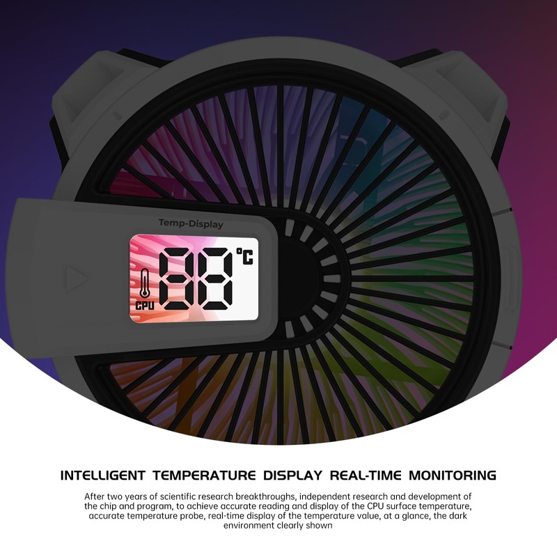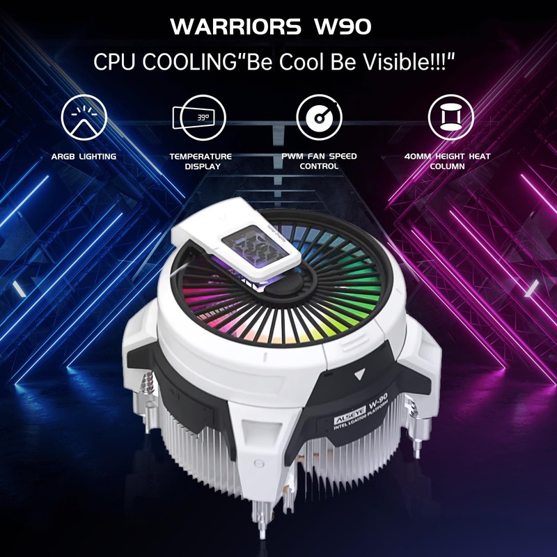 ALSEYE W90 Digital CPU Cooler for Intel, Temperature Displayed CPU Cooler for Small Size PC Case with Powerful 90mm ARGB Lighting Fan and 40mm High-Performance Heat Column Inside. (W90-Intel)