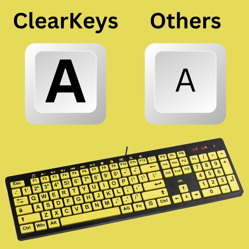 Alt Clearkeys Keyboard Large Print High Contrast USB Wired Computer Keyboard Yellow Keys with Black Letters - Oversized Print Big Letters Great for Visually Impaired Individuals and Seniors