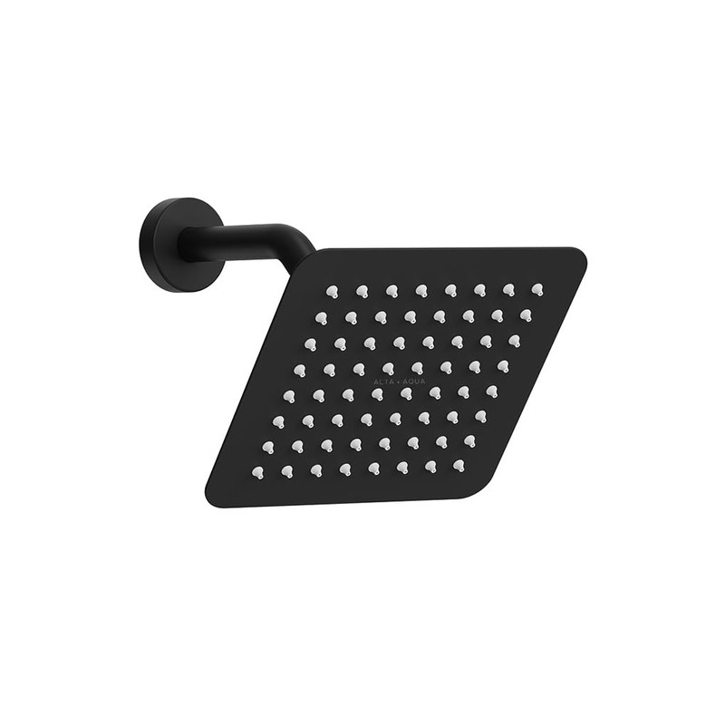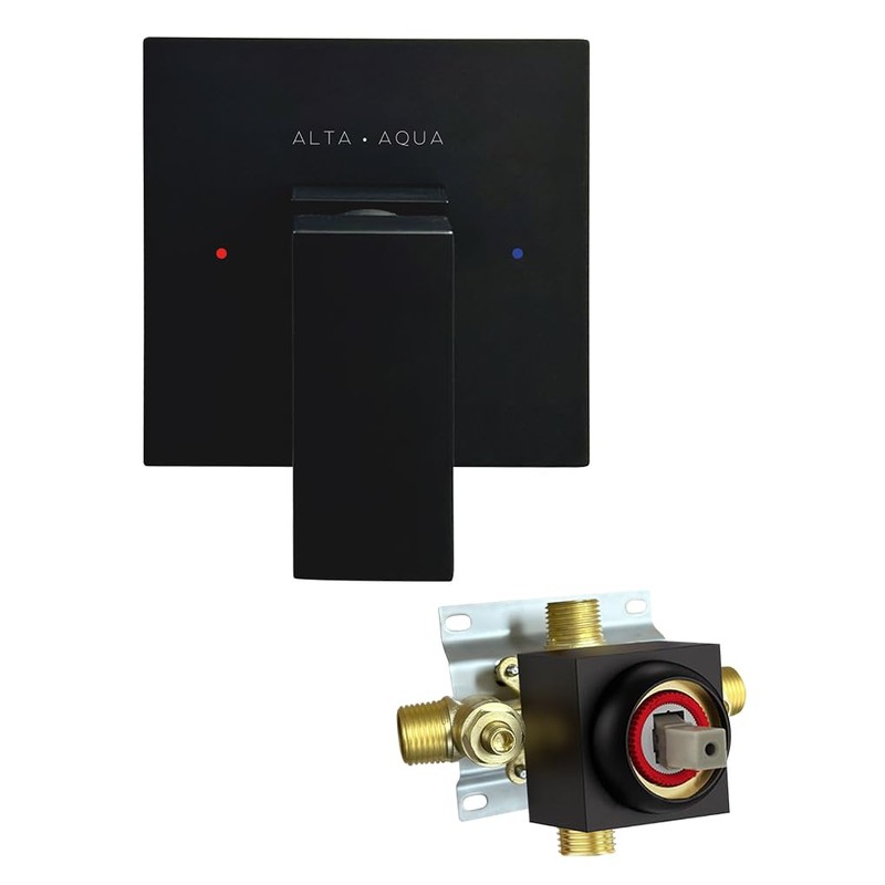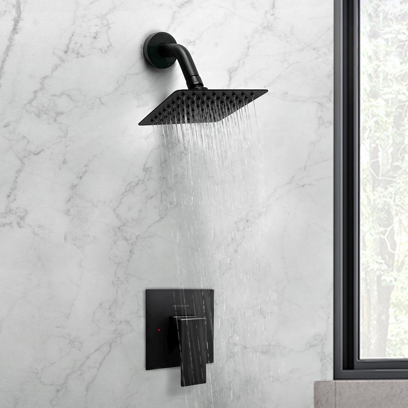 Alta Aqua Modern Square Rain Shower System with Pressure-Balanced Mixing Valve – Wall-Mounted Rainfall Shower Head and Single-Handle Control - Brass and stainless steel construction (Matte Black)