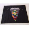 This is a beautiful tarot cloth, about 18 inches x 20 inches. professionally printed from my design, available in either all natural cotton or shiny polyester satin. All my cotton tarot cloths are 2-ply, high quality printed cotton backed by cotton. The satin cloths are single ply with a narrow hem.