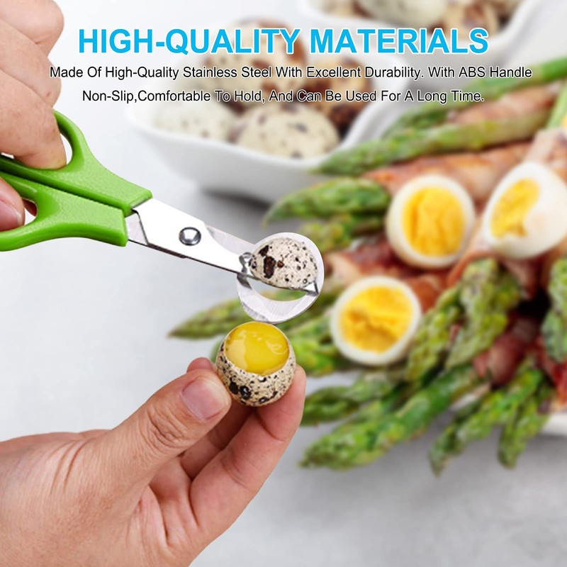 - Features: The quail egg scissors are easy to use and hygienic. The hole or circle of the quail egg scissors has the inner edge, which is smooth and not sharp, and the egg shell can be cut cleanly and tidily. Safe and saves time, leaves no shell pieces.